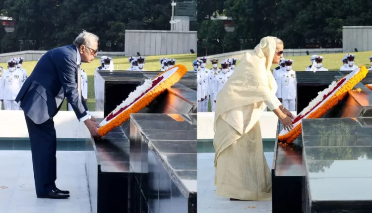 রাষ্ট্রপতি ও প্রধানমন্ত্রীর শ্রদ্ধা নিবেদনের পর তিন বাহিনী প্রধান শিখা অনির্বাণে শ্রদ্ধা নিবেদন করেন।