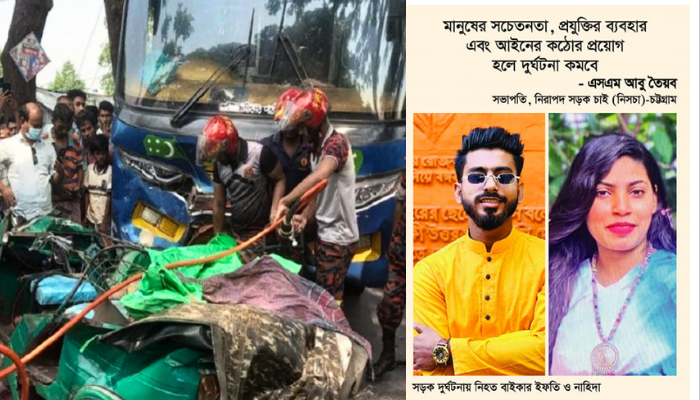 নিরাপদ সড়ক চাই (নিসচা) চট্টগ্রাম মহানগরের সভাপতি এস.এম আবু তৈয়ব দৈনিক দেশ বর্তমানকে বলেন, সড়ক দুর্ঘটনা রোধে প্রথম কথা হচ্ছে সচেতনতা। গন্তব্য পোঁছাতে মানুষ যেভাবে তাড়াহুড়া করে, প্রতিটি গাড়ি, প্রত্যেক মানুষ কিংবা যাত্রী যেখানে সবার মধ্যে তাড়াহুড়া কিংবা অসহিষ্ণুভাব, অসুস্থ প্রতিযোগিতা চলছে, যার কারণে সড়ক দুর্ঘটনা বাড়ছে। সবার মাঝে ধৈর্যের অভাব দেখা যাচ্ছে, যা পুলিশ কিংবা আইনশৃঙ্খলা বাহিনী তা কতক্ষণ পর্যবেক্ষণে রাখবে। এখানে ব্যক্তিগত সচেতনতা ছাড়া এটা রোধ করা প্রায় অসম্ভব। দেশে আইন আছে, কিন্তু আইনের সুষ্ঠু প্রয়োগ নেই, শাস্তি প্রয়োগ করা হচ্ছে না, সুষ্ঠু বিচার হচ্ছে না, ফলে আইন না মানার প্রবণতা দিন দিন বৃদ্ধি পাচ্ছে। বিদেশে আইন মানতে কড়া নির্দেশনা থাকায় সেখানে মানুষ বাধ্য। আমাদের দেশেও আইনের কঠোর প্রয়োগ হলে সড়কে চলাচলকারীরা আইন মানতে বাধ্য হবে।