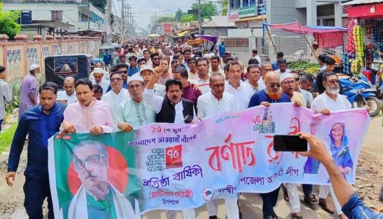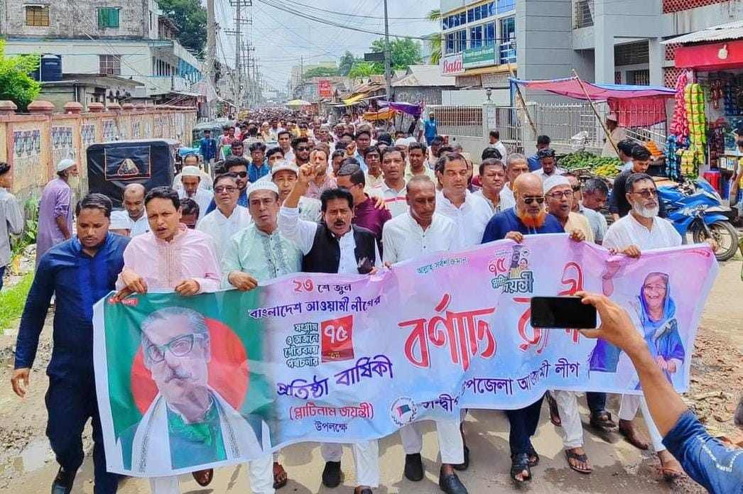 সন্দ্বীপে নানা কর্মসূচির মধ্য দিয়ে রোববার(২৩ জুন) আওয়ামীলীগের প্লাটিনাম জয়ন্তী উদযাপন করা হয়েছে। কর্মসূচির মধ্যে ছিল- জাতীয় ও দলীয় পতাকা উত্তোলন, জাতির পিতা বঙ্গবন্ধুর প্রতিকৃতিতে পুষ্পার্ঘ অর্পণ, আনন্দ শোভাযাত্রা, আলোচনা সভা, দোয়া ও মিলাদ মাহফিল ইত্যাদি।