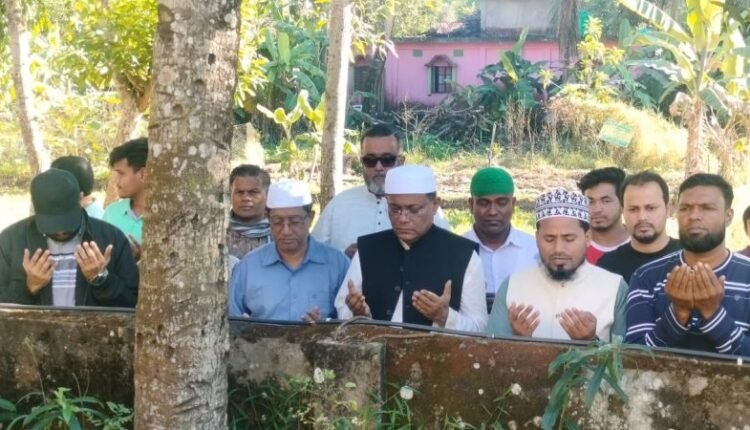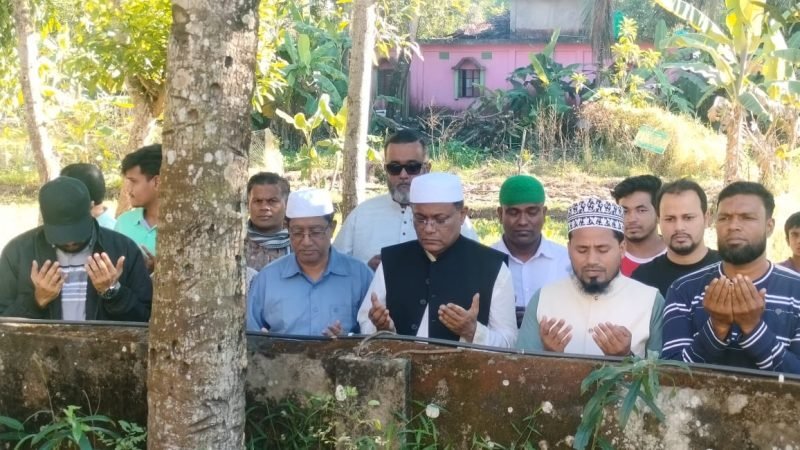 কবর জিয়ারত শেষে মোনাজাত পরিচালনা করেন উত্তর পদুয়া কেন্দ্রীয় জামে মসজিদের খতিব জমির উদ্দিন।