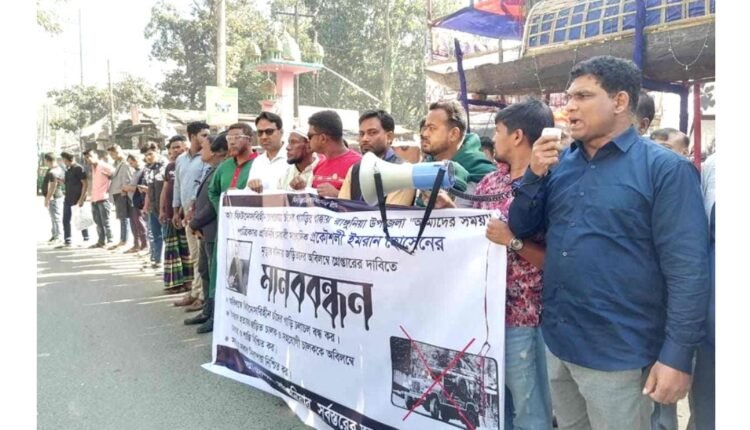 মঙ্গলবার (২ জানুয়ারি) রাঙ্গুনিয়া উপজেলার গোডাউন চত্বরে আয়োজিত এক মানববন্ধন ও প্রতিবাদ সমাবেশ থেকে অবৈধ, ফিটনেসবিহীন চাঁদের গাড়ির দৌরাত্ম্য বন্ধ ও নিরাপদ সড়ক নিশ্চিতে প্রশাসনের হস্তক্ষেপের আহ্বানও জানিয়েছেন তারা।