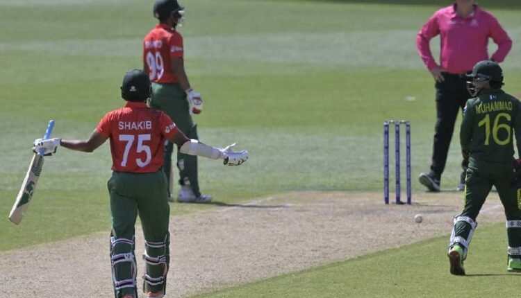 অ্যাডিলেড ওভালে পাকিস্তানের শাদাব খানের ধীর গতির ফুলটস সাকিবের ব্যাটে লাগার পর পায়ে লাগে। শাদাব এলবিডব্লিউয়ের আবেদন করার পর মাঠের আম্পায়ার আউট দিয়ে দেন। সাকিব সঙ্গে সঙ্গে ডিআরএস নেন।