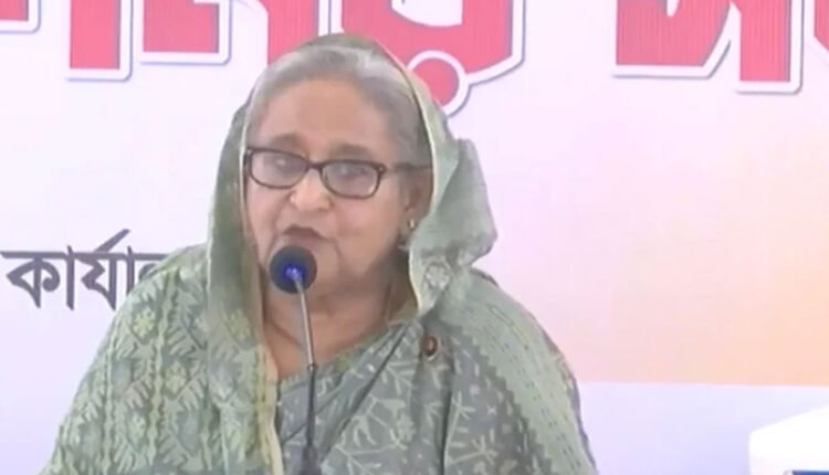 এর আগে নিজ বাড়ি থেকে হেঁটে টুঙ্গিপাড়া উপজেলা আওয়ামী লীগ কার্যালয়ে পৌঁছান বঙ্গবন্ধু কন্যা।
