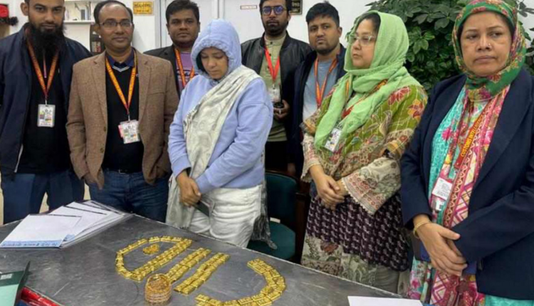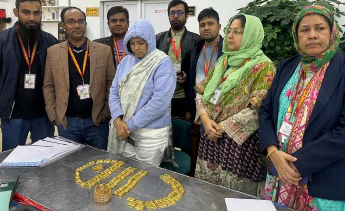 শুল্ক গোয়েন্দা জানায়, গোপন সংবাদের ভিত্তিতে মঙ্গলবার (১৯ ডিসেম্বর) রাত ১১টায় দুবাই থেকে ঢাকায় আসা এমিরেটস এয়ারলাইন্স এর ফ্লাইট নং- EK584 এর যাত্রী রেখা পারভীনকে তল্লাশি করে তার সাদা হ্যান্ড ব্যাগের ভেতরে কালো কাপড়ে মোড়ানো স্বর্ণবার উদ্ধার করা হয়। জব্দ করা স্বর্ণ (যাত্রীসহ) গ্রিন চ্যানেলের ইনভেন্ট্রি টেবিলে বিভিন্ন সংস্থার উপস্থিতিতে খোলা হয়। গণনা করে ৬৯টি স্বর্ণবার, ১টি স্বর্ণের চেইন পাওয়া যায়। পরে যাত্রীর দেহ তল্লাশি করে আরও ৬টি স্বর্ণের চুড়ি পাওয়া যায়। মোট উদ্ধার করা স্বর্ণের বারের ওজন ৮ কেজি ৪ গ্রাম, ১টি স্বর্ণের চেইন যার ওজন ১১৫ গ্রাম এবং ৬টি স্বর্ণের চুড়ি যার ওজন ৯৮ গ্রাম। উদ্ধার করা স্বর্ণের মোট ওজন ৮ কেজি ২১৭ গ্রাম। স্বর্ণের আনুমানিক বাজার মূল্য ৬ কোটি ৫৭ লাখ ৩৬ হাজার টাকা। এরপর স্বর্ণবারগুলো ঢাকা কাস্টম হাউসের গুদামে জমা দেওয়া হয় ও যাত্রীকে আটক করে বিমানবন্দর থানায় হস্তান্তর করে ফৌজদারি মামলা দায়ের করা হয়।