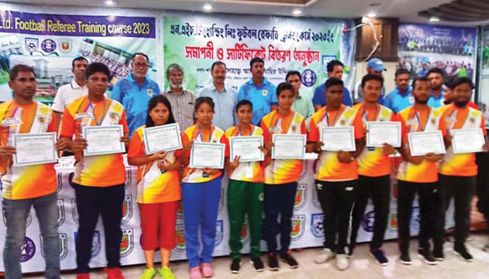 বাফুফে রেফারিজ কমিটির পরিচালনায় ও চট্টগ্রাম জেলা ফুটবল রেফারিজ অ্যাসোসিয়েশনের (সিজেএফআরএ) আয়োজনে পাঁচদিন ব্যাপী নতুন রেফারিং প্রশিক্ষণ কোর্স  বৃহস্পতিবার (১৫ জুন) সম্পন্ন হয়েছে।  সমাপনী অনুষ্ঠানে প্রধান অতিথি থেকে প্রশিক্ষণার্থীদের মাঝে সনদ বিতরণ করেন সিজেকেএস সাধারণ সম্পাদক ও সিজেএফআরএ সভাপতি আ জ ম নাছির উদ্দীন।