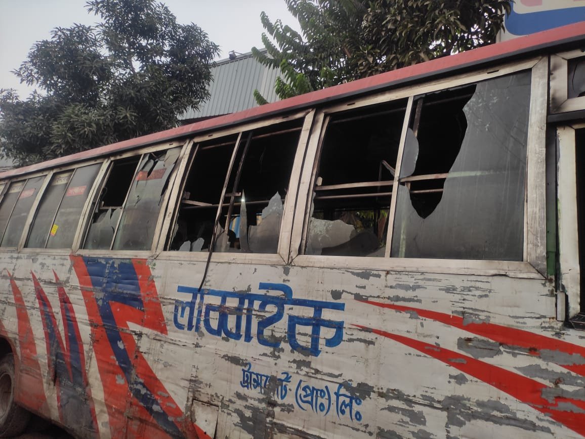 সিদ্ধিরগঞ্জে মধ্যরাতে বাস ভাঙচুর ও অগ্নিসংযোগ