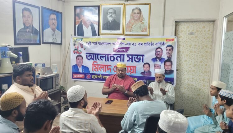 এসময় দোয়া মাহফিলে জাতির জনক বঙ্গবন্ধু শেখ মুজিবুর রহমানের বিদেহী আত্মার মাগফেরাত, প্রধানমন্ত্রী শেখ হাসিনা ও অসুস্থ নারায়ণগঞ্জ-৪ আসনের সংসদ সদস্য একেএম শামীম ওসমানের সুস্বাস্থ্য ও দীর্ঘায়ু কামনা করে দোয়া পরিচালনা করা হয়।