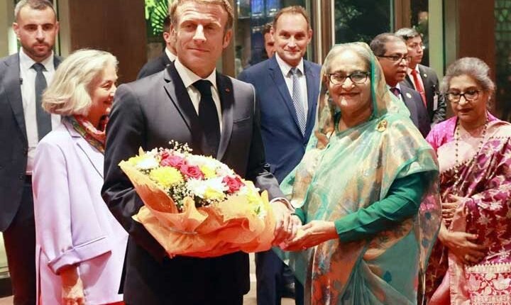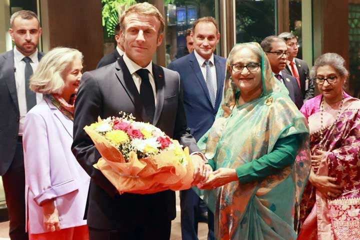 ঢাকা সফররত ফ্রান্সের প্রেসিডেন্ট ইমানুয়েল ম্যাক্রোঁর সঙ্গে গণভবনে দ্বিপক্ষীয় বৈঠকে বসবেন প্রধানমন্ত্রী শেখ হাসিনা।