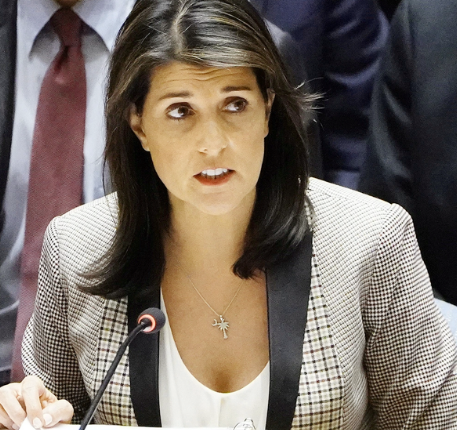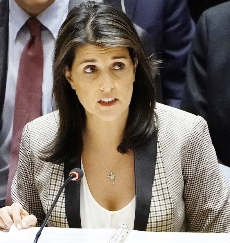 যুক্তরাষ্ট্র্রের সাউথ ক্যারোলিনা রাজ্যের সাবেক গভর্নর নিকি হ্যালি। জাতিসংঘে যুক্তরাষ্ট্রের সাবেক রাষ্ট্রদূত হিসেবেও দায়িত্ব পালন করেছেন তিনি।