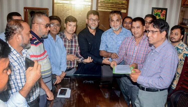 বঞ্চিত ব্যবসায়ী নেতাদের পক্ষে লিখিত দাবী উপস্থাপন করেন আহবায়ক এস এম সাইফুল আলম।