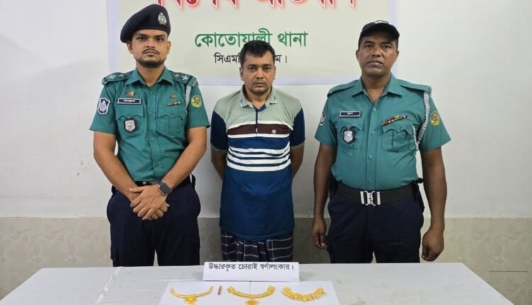 দোকানের ২২ ভরি স্বর্ণালংকার চুরি করে বিদেশে পালানোর সময় ঢাকার এয়ারপোর্ট এলাকা তাকে গ্রেপ্তার করা হয়েছে বলে জানিয়েছে কোতোয়ালী থানা পুলিশ।