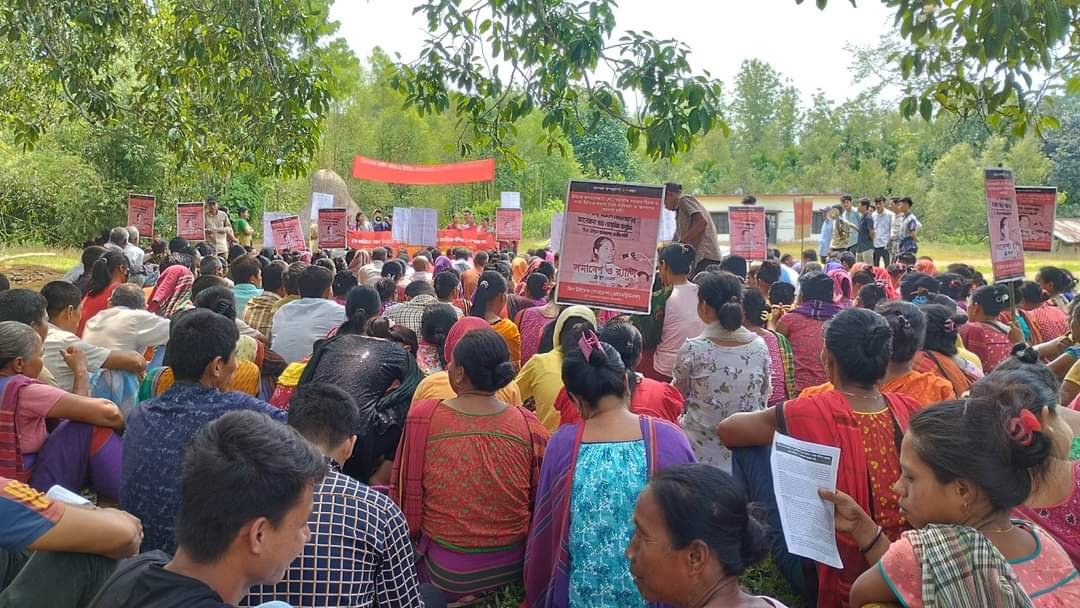 ‘যে জাতিতে বোন উদ্ধারে ভাইরা আত্মাহুতি দেয়, সেই জাতিকে দমিয়ে রাখা যাবে না’ -এ শ্লোগানে অনুষ্ঠিত সমাবেশে সভাপতিত্ব করেন পার্বত্য চট্টগ্রাম নারী সংঘের বাঘাইছড়ি উপজেলার সভাপতি অমিতা চাকমা।