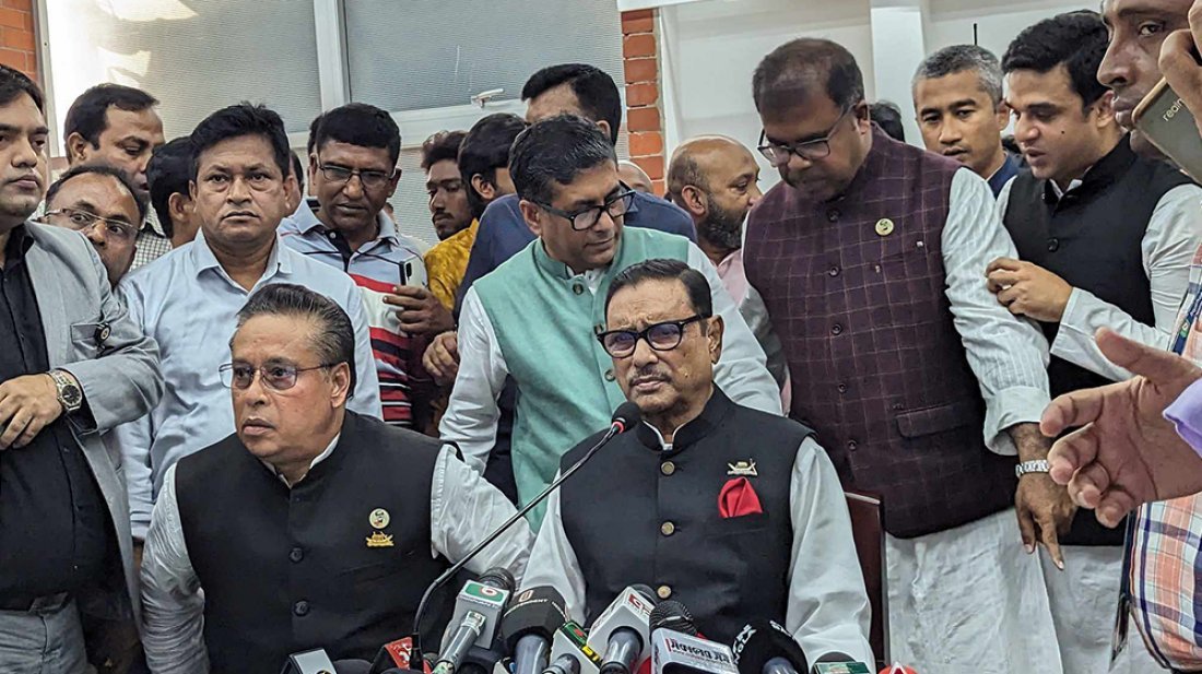 আওয়ামী লীগের সাধারণ সম্পাদক ওবায়দুল কাদের বলেছেন, আজকে রংপুর বিভাগের ৩৩টি এবং রাজশাহী বিভাগের ৩৯টি আসনের (মোট ৭২টি) দলীয় প্রার্থী চূড়ান্ত করা হয়েছে। তিনি বলেন, ‘আমরা সব আসনে মনোনয়ন চূড়ান্ত না হওয়ার পর্যন্ত তালিকা প্রকাশ করবো না, একসঙ্গে আনুষ্ঠানিকভাবে তালিকা ঘোষণা করবো।’ বৃহস্পতিবার (২৩ নভেম্বর) তেজগাঁওয়ে ঢাকা জেলা আওয়ামী লীগ ভবনে দলের সংসদীয় মনোনয়ন বোর্ডের সভা শেষে এক প্রশ্নের জবাবে এসব কথা বলেন তিনি। শুক্রবার (২৪ নভেম্বর) সকাল ১০টা পর্যন্ত আওয়ামী লীগের সংসদীয় মনোনয়ন বোর্ডের সভা মুলতবি করা হয়েছে বলে জানান ওবায়দুল কাদের। এক প্রশ্নের জবাবে তিনি বলেন, ‘আজকে আমাদের মনোনয়ন বোর্ডের যে সিদ্ধান্ত হয়েছে, তার মধ্যে রাজনীতির বাইরে কোনও সিদ্ধান্ত হয়েছে বলে আমার জানা নেই। বর্তমানের সংসদ সদস্য কতজন বাদ পড়ছেন এই মুহূর্তে আমি বলতে পারছি না। তবে বাদ পড়েছে। প্রার্থী বাছাইয়ের ক্ষেত্রে জনগণের কাছে গ্রহণযোগ্য প্রার্থীকেই প্রাধান্য দেওয়া হয়েছে।’ আগামী ২৫ নভেম্বর প্রার্থীদের নাম প্রকাশ করা হবে বলে জানিয়েছেন আওয়ামী লীগের সাধারণ সম্পাদক। দলীয় সিদ্ধান্তের বাইরে গিয়ে ‘বিদ্রোহী’ প্রার্থী হলে তাদের ব্যাপারে আওয়ামী লীগের অবস্থান কী, জানতে চাইলে ওবায়দুল কাদের বলেন, ‘আগে আমরা দেখি কারা বিদ্রোহী প্রার্থী হয়, তারপর সিদ্ধান্ত নেবো।’ তিনি বলেন, ‘নির্বাচনকে ঘিরে সারা দেশে একটি উৎসবমুখর পরিবেশ বিরাজমান। জোট হবে বিভিন্নভাবে। কার সঙ্গে কার জোট হবে, কোথায় গিয়ে ঠেকবে বলা মুশকিল। জোট হতেও পারে নির্বাচনের আগে, সময় আছে। কাজেই তালিকাও আসতে পারে। এমনও হতে পারে— আপনিও ভাবছেন না, আমিও ভাবছি না। কিন্তু কার সঙ্গে কার জোট হয়, কেউ ভাবতে পারে না।’ বৃহস্পতিবার সকাল ১০টা ১০ মিনিটে আওয়ামী লীগ ভবনে দলের সংসদীয় মনোনয়ন বোর্ডের সভা শুরু হয়। চলে বেলা ২টা পর্যন্ত। সভায় সভাপতিত্ব করেন আওয়ামী লীগের সভাপতি ও সংসদীয় মনোনয়ন বোর্ডের সভাপতি শেখ হাসিনা। সভায় উপস্থিত ছিলেন আওয়ামী লীগের মনোনয়ন বোর্ডের সদস্য আমির হোসেন আমু, তোফায়েল আহমেদ, মোশাররফ হোসেন, কাজী জাফর উল্লাহ, শেখ ফজলুল করিম সেলিম, ওবায়দুল কাদের, আবুল হাসনাত আবদুল্লাহ, রাশিদুল আলম, রমেশচন্দ্র সেন, দীপু মনি। দলীয় সূত্র জানায়, আগের জাতীয় সংসদ নির্বাচনে আওয়ামী লীগের মনোনয়ন বোর্ডের সভা দলটির সভাপতির ধানমন্ডি কার্যালয়ে এবং প্রধানমন্ত্রীর সরকারি বাসভবন গণভবনে হতো। তবে এবার নির্বাচনকালে প্রধানমন্ত্রী শেখ হাসিনা গণভবনে রাজনৈতিক কোনও কার্যক্রম করবেন না বলে ঢাকা জেলা আওয়ামী লীগের তেজগাঁও কার্যালয়ে হচ্ছে দলটির মনোনয়ন বোর্ডের সভা। দ্বাদশ জাতীয় সংসদ নির্বাচন উপলক্ষে আওয়ামী 