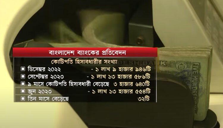 দেশের ব্যাংকগুলোতে কোটিপতি আমানতকারী হিসাবধারীর সংখ্যা আরও বেড়েছে। গত ৯ মাসে কোটিপতি হিসাবধারীর সংখ্যা বেড়েছে তিন হাজার ৬৪০টি। এরমধ্যে ব্যক্তির পাশাপাশি প্রাতিষ্ঠানিক হিসাবও রয়েছে। প্রভিডেন্ট ফান্ডসহ বিভিন্ন তহবিলের অর্থ রয়েছে প্রতিষ্ঠানের আমানত হিসাবে। আর ব্যক্তি আমানতকারীদের হিসাবে রয়েছে ব্যক্তিগত সঞ্চয়। এসব হিসাবে সুদসহ মুনাফা যোগ হওয়ায় বেড়ে যাচ্ছে কোটিপতির সংখ্যা। কেন্দ্রীয় ব্যাংকের এক প্রতিবেদন থেকে এসব তথ্য পাওয়া গেছে। করোনা মহামারি ও রুশ-ইউক্রেন যুদ্ধের কারণে বৈশ্বিক সংকটের প্রভাব পড়েছে দেশের অর্থনীতিতেও। উচ্চ মূল্যস্ফীতিতে চিড়ে-চ্যাপ্টা সাধারণ মানুষ। এ অবস্থায় ব্যাংকে টাকা জমানোতো দূরের কথা, সংসারের ব্যয় মেটাতেই হিমশিম খাচ্ছেন অনেকে। এমন পরিস্থিতিতেও দেশের ব্যাংকগুলোতে বেড়ে গে ছে কোটিপতি হিসাবধারীর সংখ্যা। বাংলাদেশ ব্যাংকের প্রকাশিত রিপোর্টের তথ্য বলছে, গত বছরের ডিসেম্বর পর্যন্ত ব্যাংকে কোটিপতি আমানতকারীর হিসাব ছিল এক লাখ ৯ হাজার ৯৪৬টি। চলতি বছরের সেপ্টেম্বর পর্যন্ত তা বেড়ে হয়েছে এক লাখ ১৩ হাজার ৫৮৬টি। আলোচ্য ৯ মাসে কোটিপতি আমানতকারীর হিসাব বেড়েছে তিন হাজার ৬৪০টি। কেন্দ্রীয় ব্যাংকের প্রতিবদেন বলছে, চলতি বছরের জুন পর্যন্ত এক কোটি টাকার বেশি আমানত রয়েছে এমন ব্যাংক হিসাবের সংখ্যা ছিল এক লাখ ১৩ হাজার ৫৫৪টি। সেই হিসেবে তিন মাসের ব্যবধানে কোটি টাকার হিসাব বেড়েছে ৩২টি। অন্যদিকে শীর্ষ পর্যায়ে ৫০ কোটি টাকার বেশি এমন সংখ্যা বেড়েছে তুলনামূলক কম। তবে এই হিসাবগুলোর মধ্যে ব্যক্তির সংখ্যা কত, সেই পরিসংখ্যান বাংলাদেশ ব্যাংকের প্রতিবেদনে নেই।
