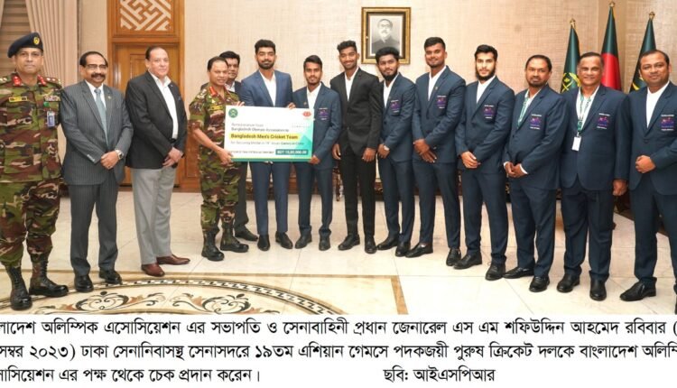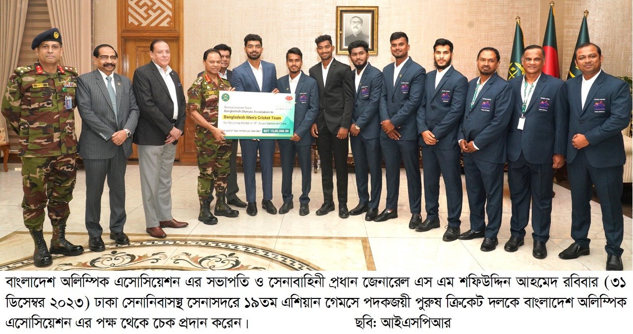 গত ২৩ সেপ্টেম্বর ২০২৩ হতে ০৮ অক্টোবর ২০২৩ তারিখ পর্যন্ত চীনের হ্যাংজু (ঐধহমুযড়ঁ) শহরে অনুষ্ঠিত ১৯তম এশিয়ান গেমসে পদকজয়ী পুরুষ ও মহিলা ক্রিকেট দল দুটি ব্রোঞ্জ পদক অর্জন করায় জাতীয় ও আন্তর্জাতিক পরিমণ্ডলে অভূতপূর্ব সাফল্য অর্জনের মাধ্যমে দেশের ভাবমূর্তি উজ্জ্বল করেছে। সেনাবাহিনী প্রধান কর্তৃক এ সম্মাননা প্রদান দেশের কৃতিমান খেলোয়াড়দের উৎসাহ এবং উদীয়মান খেলোয়াড়দের অনুপ্রাণিত করবে।