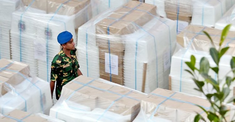 আসন্ন দ্বাদশ জাতীয় সংসদ নির্বাচনে ভোটের ব্যালট পেপার ছাপানো হবে প্রার্থীদের প্রতীক বরাদ্দ দেওয়ার পর। আর নির্বাচনের তিন-চারদিন আগে জেলা পর্যায়ে ব্যালট পেপার চলে যাবে। বৃহস্পতিবার (১৬ নভেম্বর) আগারগাঁওয়ে কমিশন ভবনে সাংবাদিকদের প্রশ্নের জবাবে ইসি সচিব মো. জাহাংগীর আলম এ তথ্য জানিয়েছেন। ইসির আরেক কমিশনার মো. আলমগীর জানিয়েছিলেন, ব্যালট পেপার ভোটের দিন সকালে জেলা পর্যায়ে পাঠানোর চিন্তা করা হচ্ছে। কাগজের ব্যালটের নির্বাচনে যেন কোনো রকম অপব্যবহার না হয়, সেজন্য ইসি এ কৌশল অবলম্বন করতে পারে। এ বিষয়ে প্রশ্ন করা হলে ইসির মুখপাত্র জাহাংগীর আলম বলেন, ভোটের মাঠে ব্যালট পেপার কখন যাবে এ বিষয়টি নিয়ে এখনো সিদ্ধান্ত হয়নি। তফসিল ঘোষণার পর থেকে নিয়োগ, বদলি ও রাজনৈতিক কোনো চাপ অনুভব করছেন কি না- এ প্রশ্নে তিনি বলেন, আরপিওতে সুস্পষ্টভাবে বলা আছে নির্বাচনকালীন সরকারের কোন কোন বিষয়গুলো পূর্ব অনুমোদন করতে হবে। সেখানে বলা আছে জেলা প্রশাসক, ডিএমপি কমিশনার ও তাদের অধস্তন কর্মকর্তাদের বদলির ক্ষেত্রে ইসির পূর্ব অনুমোদন নিতে হবে। সন্ধ্যা তফসিল ঘোষণা হয়েছে। তার আগ মুহূর্তের কাজ সংশ্লিষ্ট মন্ত্রণালয়ের। তফসিল ঘোষণার পর আমাদের কাজ । নির্বাচনী বিধি মোতাবেক মন্ত্রী-এমপিরা আগের মতো কাজ করতে পারবেন কি না, জানতে চাইলে ইসি সচিব স্পষ্টভাবে কিছু বলেননি। গতকাল বুধবার (১৫ নভেম্বর) সন্ধ্যা ৭টায় আগারগাঁওয়ে নির্বাচন কমিশন ভবন থেকে জাতির উদ্দেশে দেওয়া ভাষণে জাতীয় সংসদ নির্বাচনের তফসিল ঘোষণা করেন প্রধান নির্বাচন কমিশনার (সিইসি) কাজী হাবিবুল আউয়াল। ঘোষিত তফসিল অনুযায়ী, ২০২৪ সালের জানুয়ারি মাসের ৭ তারিখ রোজ রোববার ৩০০ আসনে দ্বাদশ জাতীয় সংসদের সাধারণ নির্বাচন অনুষ্ঠিত হবে। ৬৬ জন রিটার্নিং অফিসার এবং ৫৯২ জন সহকারী রিটার্নিং অফিসারের নিয়োগ চূড়ান্ত করা হয়েছে। এছাড়া মনোনয়নপত্র দাখিলের শেষ তারিখ আগামী ৩০ নভেম্বর, মনোনয়নপত্র বাছাই আগামী ১ থেকে ৪ ডিসেম্বর, রিটার্নিং অফিসারের আদেশের বিরুদ্ধে কমিশনে আপিল দায়ের ও নিষ্পত্তি ৬ থেকে ১৫ ডিসেম্বর। প্রার্থিতা প্রত্যাহারের শেষ তারিখ ১৭ ডিসেম্বর। রিটার্নিং অফিসাররা প্রতীক বরাদ্দ করবেন ১৮ ডিসেম্বর।