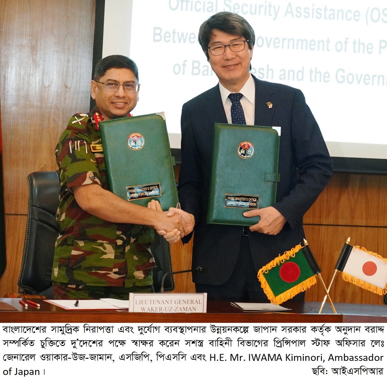 বন্ধুত্ব এবং সহযোগিতার অংশ হিসেবে, নবগঠিত Official Security Assistance (OSA) কর্মসূচির আওতায় বাংলাদেশকে ৫৭৫ মিলিয়ন জাপানি ইয়েন অনুদান বরাদ্দ করেছে জাপান সরকার। এ বিষয়ে বুধবার (১৫ অক্টোবর) ঢাকা সেনানিবাসের প্রধানমন্ত্রীর কার্যালয়, সশস্ত্র বাহিনী বিভাগে এ সংক্রান্ত একটি Exchange Note (E/N) স্বাক্ষরিত হয়। নিজ নিজ সরকারের পক্ষে চুক্তিতে স্বাক্ষর করেছেন সশস্ত্র বাহিনী বিভাগের প্রিন্সিপাল স্টাফ অফিসার লেঃ জেনারেল ওয়াকার-উজ- জামান এবং জাপান সরকারের পক্ষে H.E. Mr. IWAMA Kiminori, Ambassador of Japan।