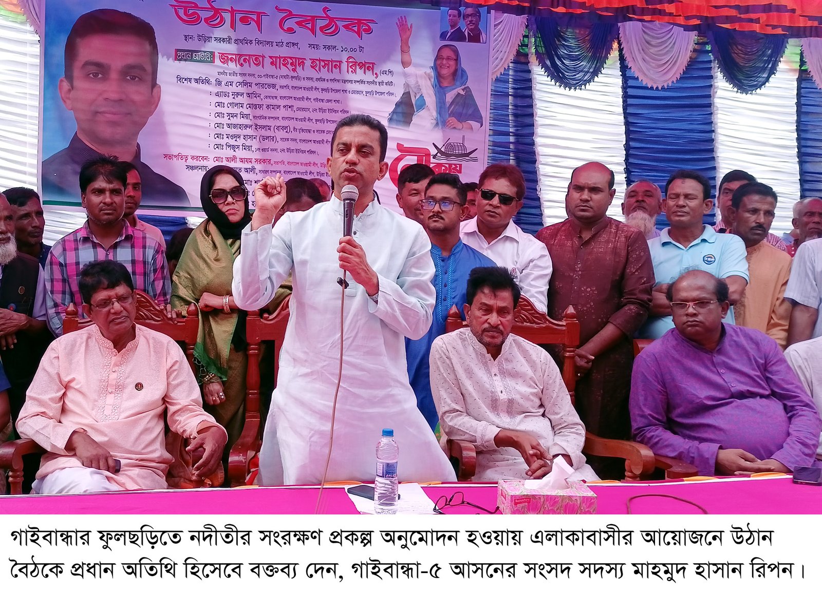 সাংসদ মাহমুদ হাসান রিপনের নির্বাচনী প্রতিশ্রুতি অনুযায়ী ফুলছড়ি উপজেলার উড়িয়া ইউনিয়নের নদীতীর সংরক্ষণ প্রকল্প একনেকে অনুমোদন হওয়ায় ও সরকারের বিভিন্ন উন্নয়ন কর্মকান্ড প্রচারে ৪টি উঠান বৈঠক অনুষ্ঠিত হয়েছে। বৃহস্পতিবার (৯ নভেম্বর) দিনব্যাপী এসব উঠান বৈঠকে প্রধান অতিথি হিসেবে বক্তব্য দেন, গাইবান্ধা-৫ আসনের সংসদ সদস্য মাহমুদ হাসান রিপন।